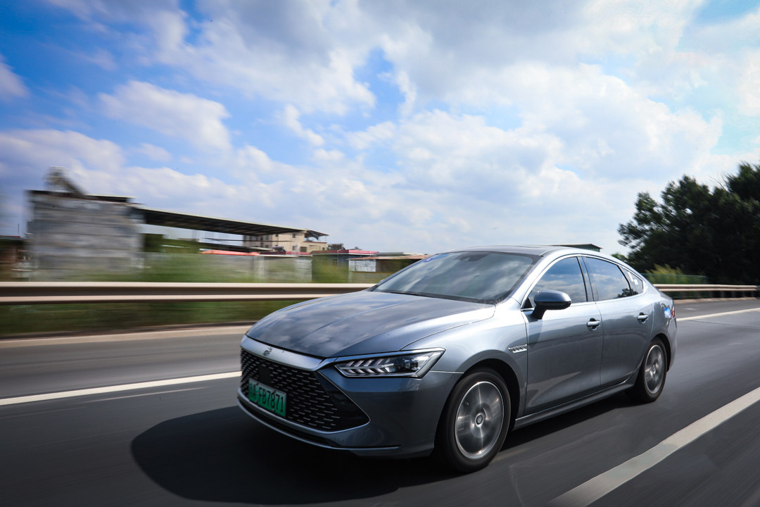 先简单介绍一下车辆,本次驾驶的是比亚迪秦PLUS DM-i 旗舰型(指导价14.58万),整体外形设计上大家都已经耳熟能详了,从秦到秦Pro再到秦PLUS,比亚迪秦的设计一款比一款出色,可谓是青出于蓝胜于蓝。