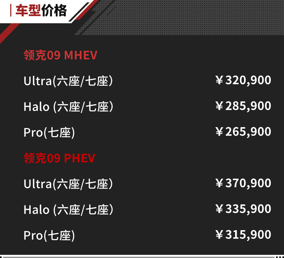 10月20日,领克09迎来正式上市,新车售价26.59万-37.09万。新车两种不同动力版本车型,除了基础版仅有6座版本之外,其余两个配置版本分别有6/7座可选。