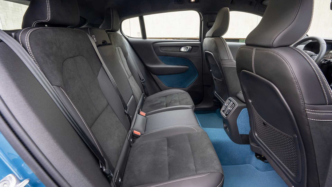 此外C40 Recharge在布局上也有明显的不同,由于其使用了溜背式车顶设计,这使得它的后排空间变得更加狭小,体验中发现身高超过182 cm的成年人落座会较为憋屈,并不适合长时间乘坐,不过翻毛皮加皮革的座椅材质搭配还是很有档次感的。