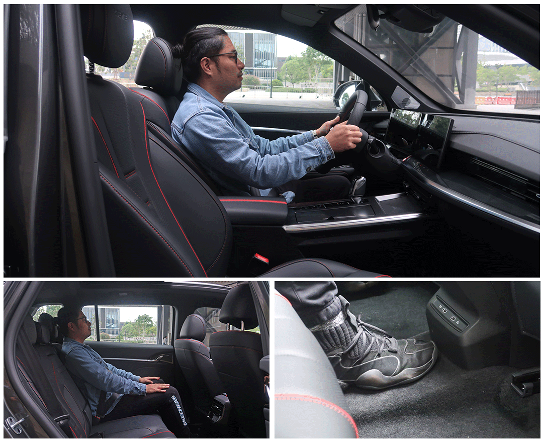 座椅官方宣传采用的是零重力座椅,实际体验厚度、柔软度、包裹性都还不错,也具备电动调节功能;后排坐垫长度适中,不会有大腿悬着的感觉。
