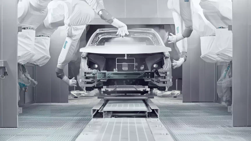 单纯在油漆工艺这个细节上,高合就已经达到超豪华的标准。高合采用了德国杜尔最先进的第三代机器人实现100%的自动化,喷头达到了每分钟65000转,让喷雾更细腻。车间内行程3万伏特的高压静电场,喷雾能够均匀吸附在车身上,这使得高合能够实现以往仅在保时捷等超豪华品牌的车型上才有的8层涂漆工艺。