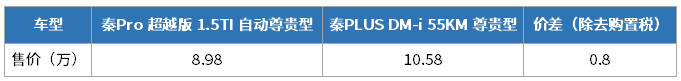 以配置相近的“秦Pro 超越版 1.5TI 自动尊贵型(8.98万)”和“秦PLUS DM-i 55KM 尊贵型 (10.58万)”为例,混动版比燃油版在售价上贵了1.6万元。不过需要注意,秦PLUS DM-i车型因为享受新能源车政策,绿牌+免购置税,所以实际的落地价只相差8,000元左右。