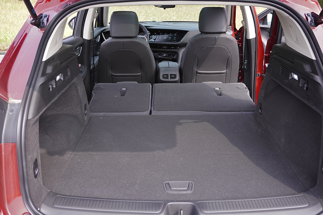 而后备箱的空间颇为满意,横向宽度和纵深都表现出色,塞几个行李箱丝毫没有压力,当然最值得点赞的第二排座椅支持4/6比例放倒,形成了一个几乎平整的空间,野外躺平最好不过了。