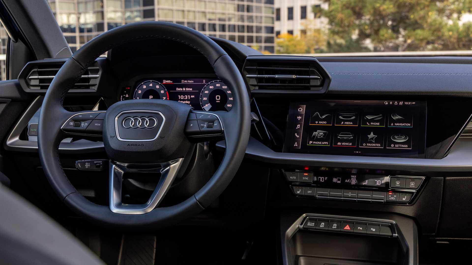 全新奥迪A3在内饰氛围的营造上可以说是重新定义了设计基调,毕竟先前第二代车型借鉴奥迪TT那样相当圆润的线条和极简主义的布局已然让人产生了审美疲劳。而2022款奥迪A3凌厉的线条处理加之银色镀铬装饰件的运用给予了内饰更加年轻时尚的设计基调。除此之外,全新的10.1英寸触摸屏搭配贯穿式出风口设计强调了科技感。