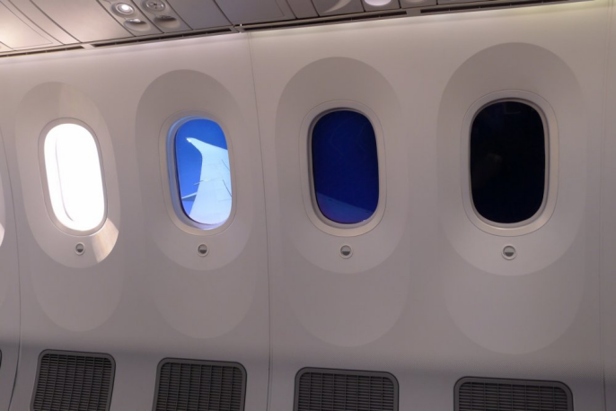 值得一提的是,著名的波音787客机上就有EC电致变色玻璃,其悬窗玻璃就支持可调光。