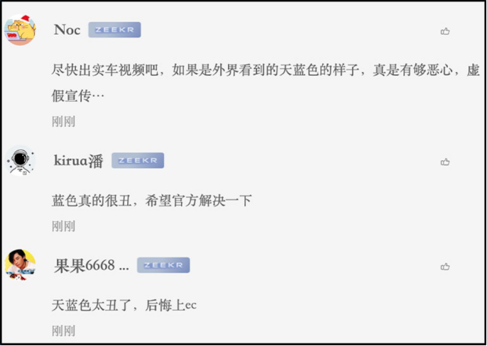 但既然目前只能呈现蓝色,而不是灰色和黑色,车主们认为这是“误导性消费”也完全在理,甚至极氪有点为了博眼球,而不惜“套路”化做营销的意思,先上车后补票,谁作为车主都不爽!