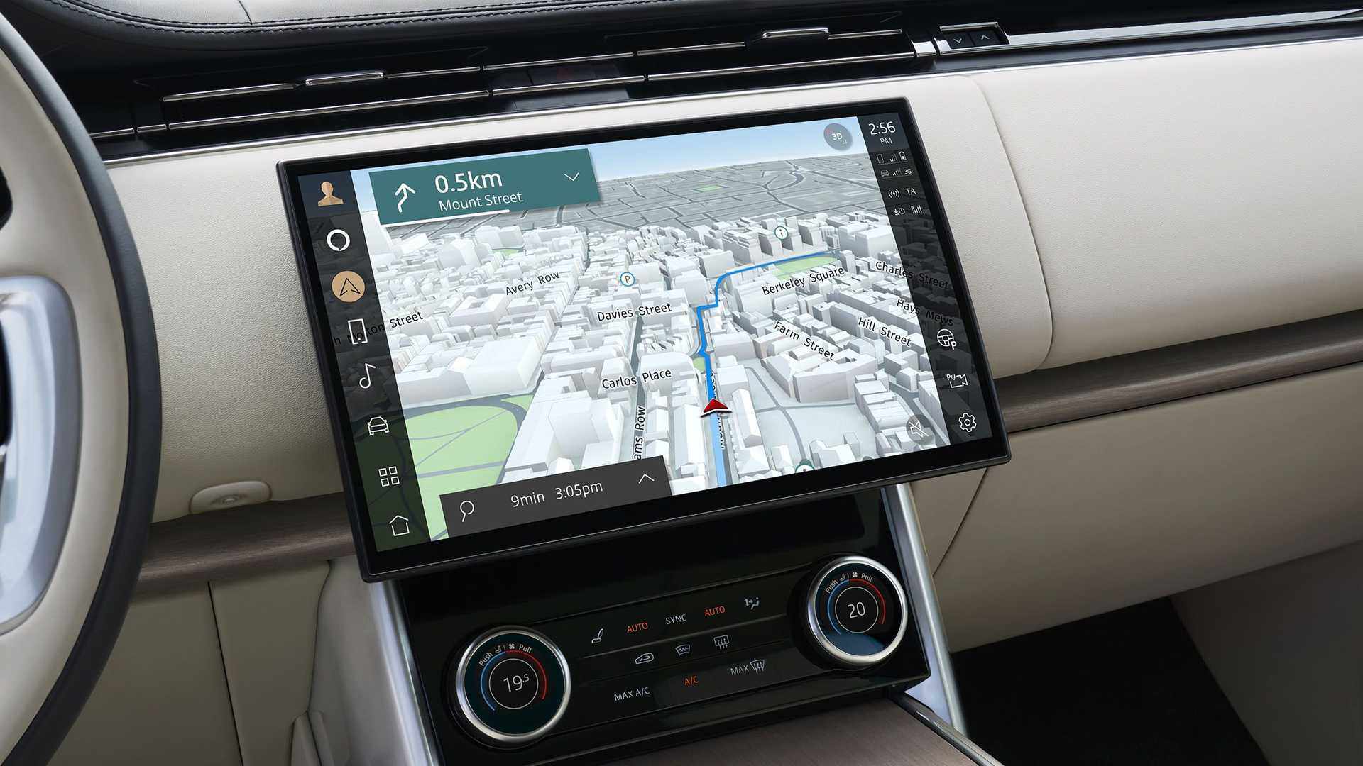 基于全新电子架构 (EVA 2.0) 的新一代揽胜,将搭载最新的InControl OS 2.0信息娱乐系统,中控由13.7英寸Pivi Pro高清曲面触控屏承接车辆大部分功能,提供亚马逊Alexa智能语音交互系统,并且提供SOTA功能。