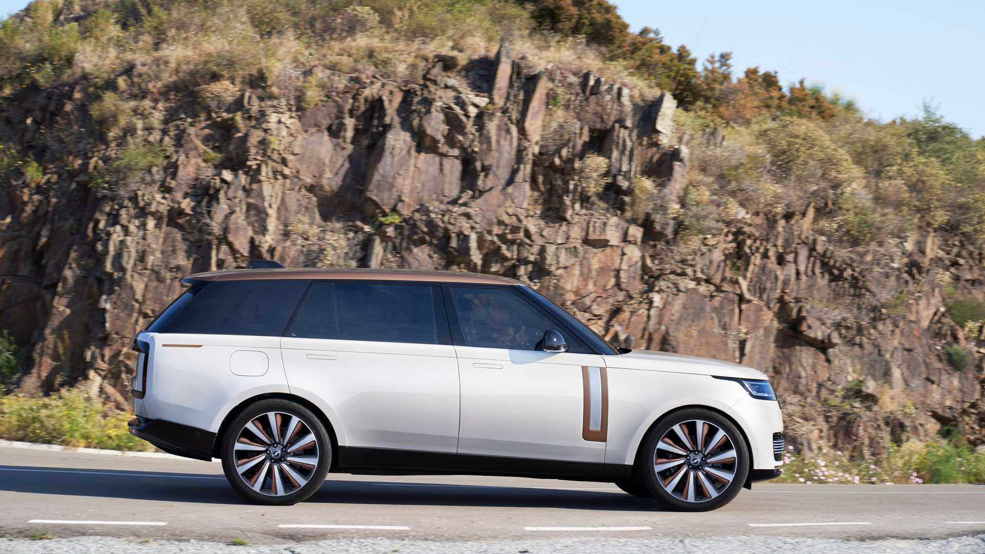 车身侧面,新一代揽胜的姿态几乎与现款揽胜保持一致,依旧展现出高大、修长的体态,在全新的MLA-FLEX架构帮助下,使得新车的整车重量得到了优化,隔音降噪水平也有所提升。而且全新的贴合式车身玻璃和隐藏式门把手,能够有效的降低风阻系数,从而大幅降低风噪。