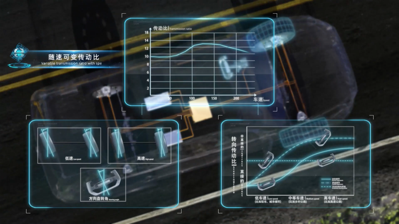 其中,长城汽车线控转向系统是全国首个支持L4级以上自动驾驶的线控转向技术,该技术彻底摈弃了转向器与转向管柱之间的转向传动轴,改为由私有CANFD完成系统内信号传递,可以实现方向盘收折,并完全隔绝路面振动,当然,对于驾驶爱好者而言,该技术还能通过手感模拟器来模拟路感,驾驶乐趣依旧。此外,由于取消了转向传动轴,使得转向比不再固定不变,可以在9-16之间主动调节或自由设置,从而获得更佳的操控感。