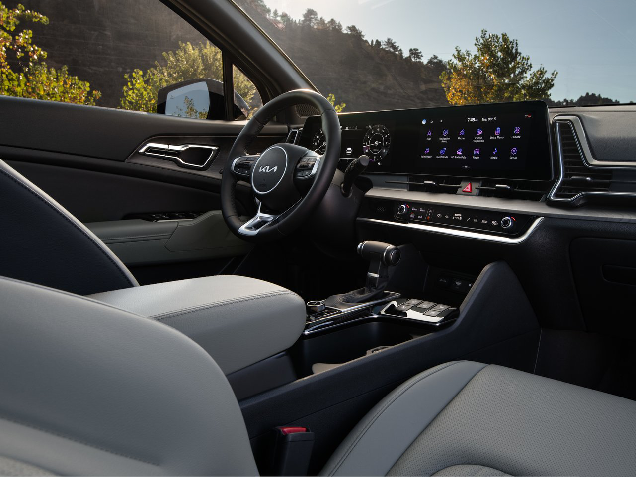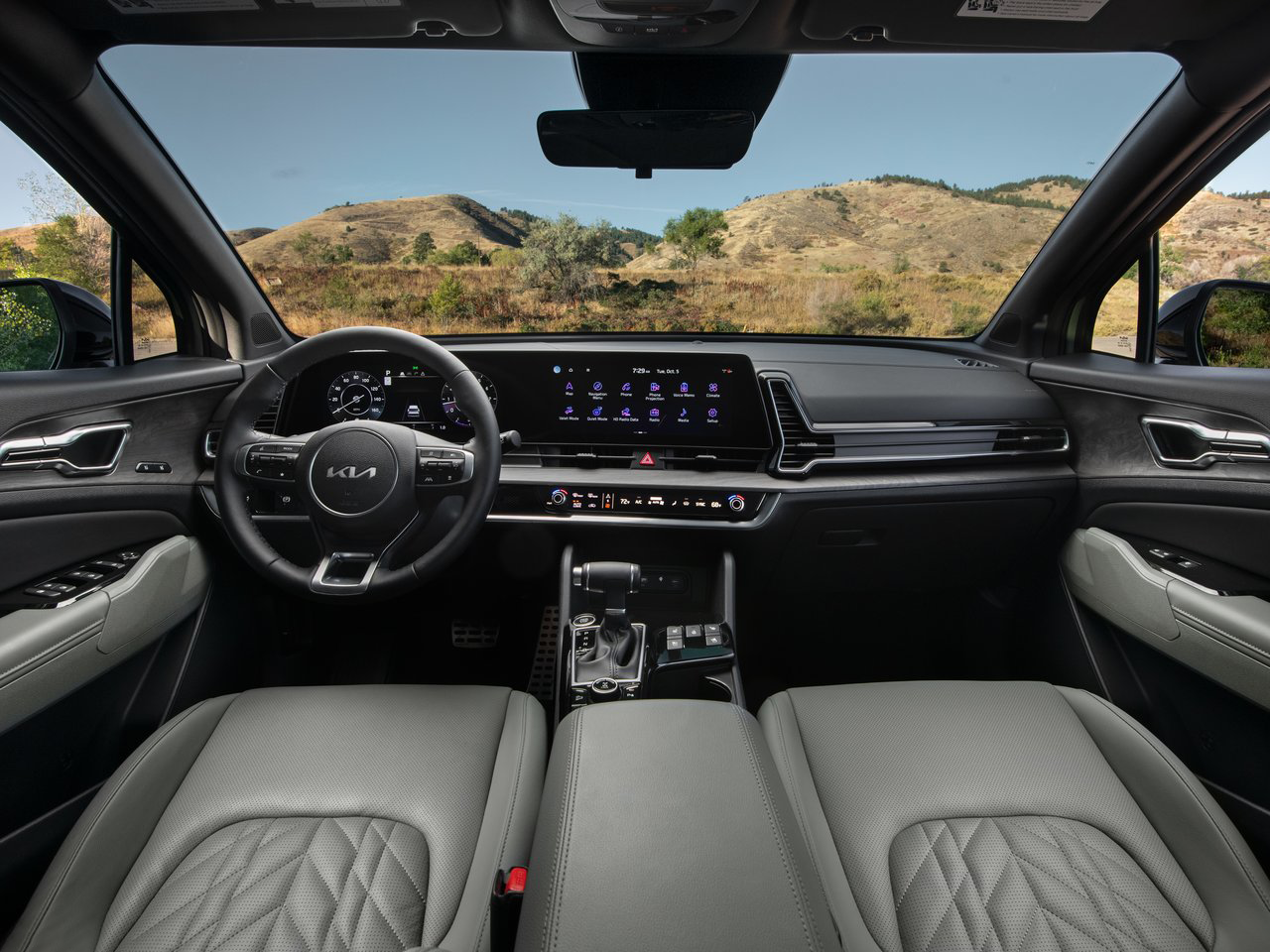起亚SPORTAGE的座舱设计在氛围感营造上提升了不少档次,两面12.3英寸的数字仪表和液晶触控屏组成了全新的双联屏。而下方自动空调安检区融入了旋钮式按键和触控式操作。提升科技范儿美感的同事也更讲究使用质感。
