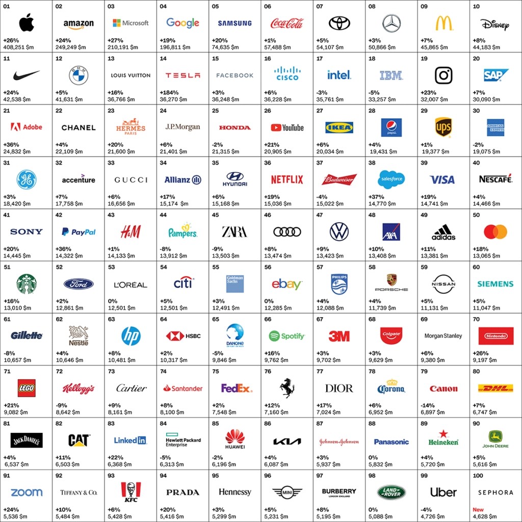 而在近日,全球知名品牌咨询公司Interbrand发布了“2021年度全球最佳品牌排行榜”(Best Global Brands 2021)。在聊榜单排名之前,先简单说明一下Interbrand这家公司,它是全球最具公信力的品牌榜之一,发布的品牌价值排名经过全面的综合分析计算,包括详尽分析财务表现、品牌对于购买行为的影响,及品牌竞争力等多方面因素。
