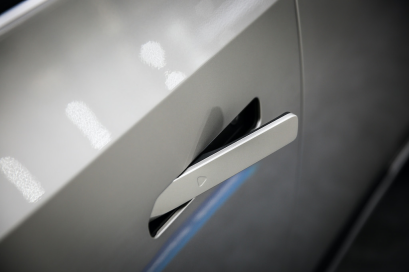 来到车身侧面,合创Z03的长宽高为4602/1900/1645mm,轴距为2750mm。双色车身和隐藏式门把手为该车的时尚感和科幻感增色不少。电动后视镜下可以隐约看到摄像头,整体来说,中规中矩,但是从这样的设计中很难去精准评判Z03到底是一款SUV还是MPV,笔者更愿意说这是一台多功能车型。