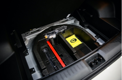 新车的储物空间也设计得很符合家用,门板内侧储物槽、中控下方的储物格、手套箱、扶手箱和前后杯架都有提供,而且大部分储物格空间都很大,能轻松放下各种随身物品。尾箱的容积则中规中矩,跟大多数的两厢小车差不多,底板的下面还有一个可放置随车工具的储物格,整体来说还是比较符合日常家用的。