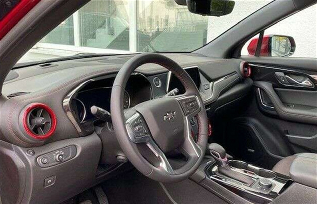 坐进最新款雪佛兰开拓者车内,红黑配色的内饰设计呈现出浓厚的运动风格,在肌肤能触碰到的地方均采用大面积软性材料进行包裹,确实提升该车的档次感。