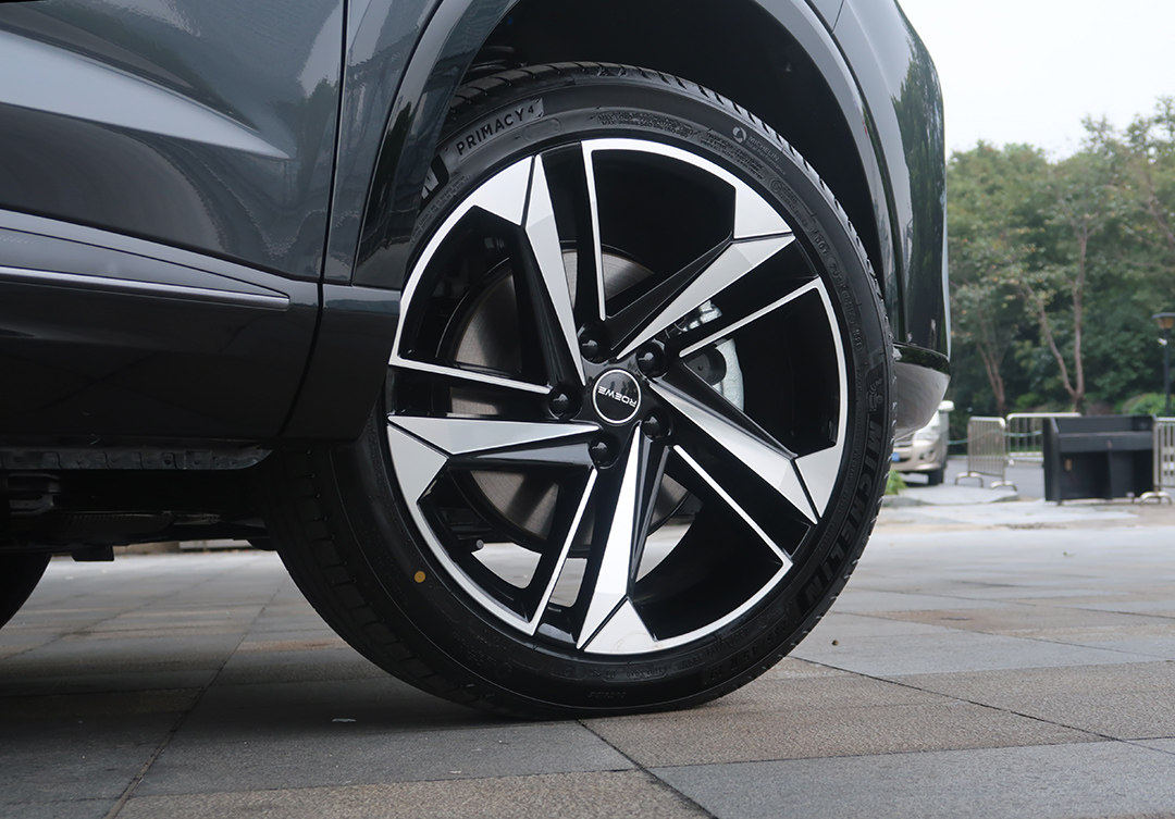 而细节方面隐藏式门把手设计的融入也让新车侧面看起来更加的简洁大气。全新的五辐式双色轮毂采用更加犀利的设计样式,搭配米其林的premacy4 R19寸的轮胎运动感十足。