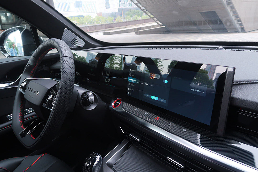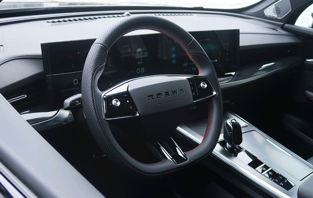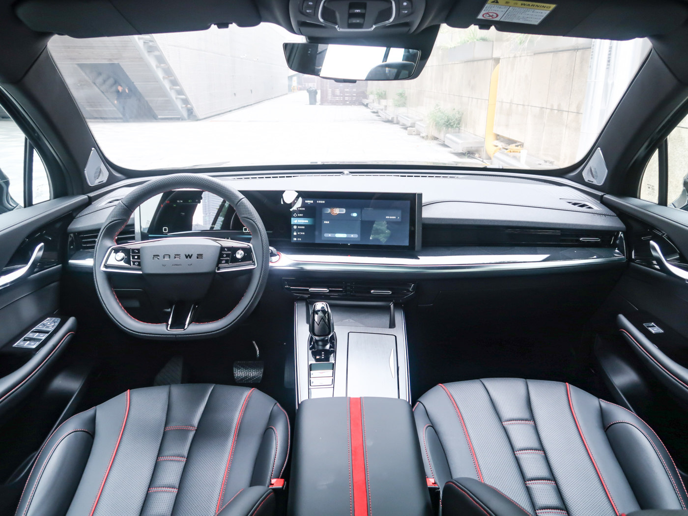 虽说是中期改款车型,但荣威RX5 MAX内饰风格的转变可以说是“焕然一新”。双面12.3英寸的屏幕构成了方向仪表和中控屏幕的“双联屏”。这样的布局给予中控台更加规整简洁的座舱氛围。