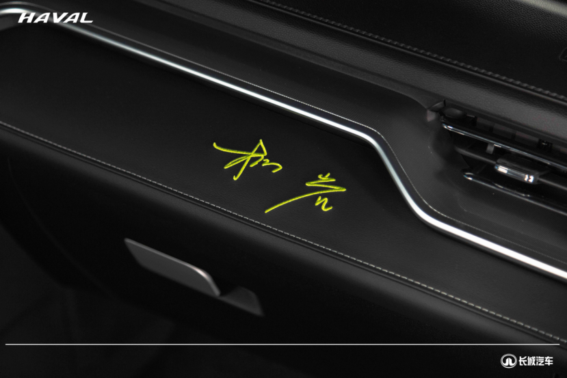 哈弗M6 PLUS柳岩联名版拥有专属的车身颜色——“岩选灰”,这款颜色是由柳岩与哈弗设计师共同完成,充满格调与质感。进入车内,副驾驶仪表板和中央扶手箱位置的柳岩刺绣签名十分引人注目,金黄色的刺绣精致而潇洒,时刻彰显着这款车型独特的“身份”。