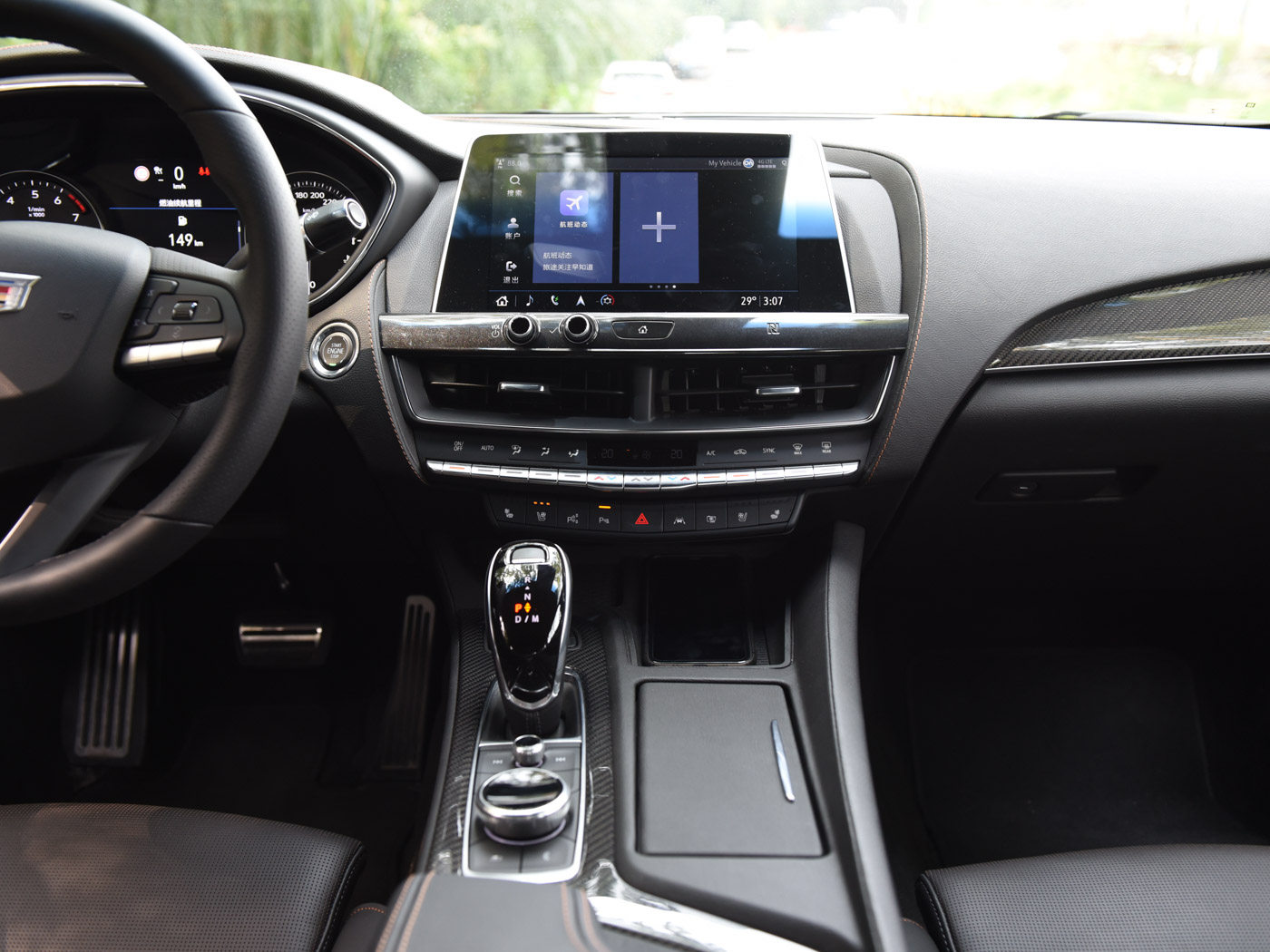 进入凯迪拉克CT5车厢内,可以看出整体中控区域设计较为简洁,氛围感更偏向传统、保守,好在用料上手能触碰到的地方均使用了皮质包裹。