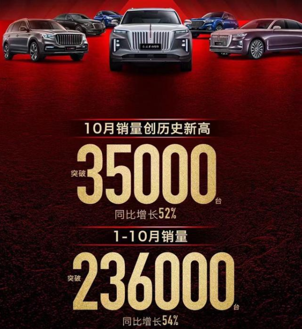 在刚刚过去的10月份,红旗销量突破35,000台,同比增长52%,今年1-10月累计销量达到了236,000,同比增长56%,保持着非常好的增长势头,如果将来再注入MPV的新鲜血液,销量势必更上一层楼。