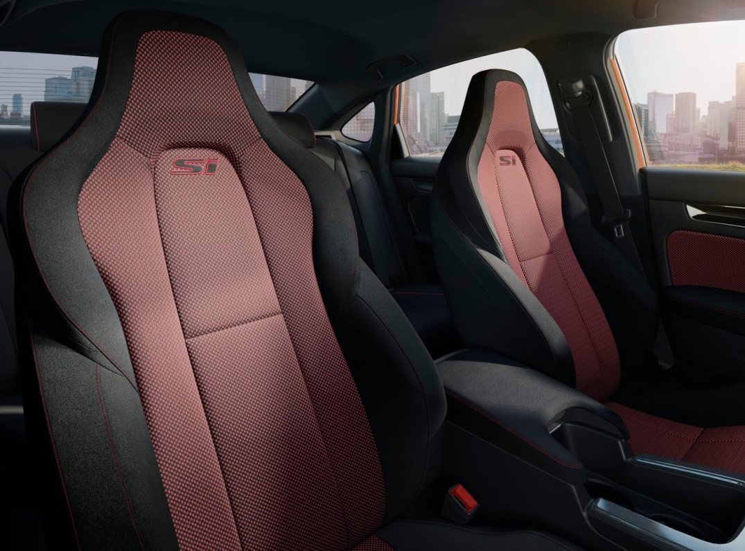 当然相比于普通版车型,思域Si的内饰采用了红黑双拼色搭配,更显豪华感与高级感,同时还配备了一体式运动座椅,并在头枕下方还绣有“Si”徽标,营造出更为强烈的运动感。