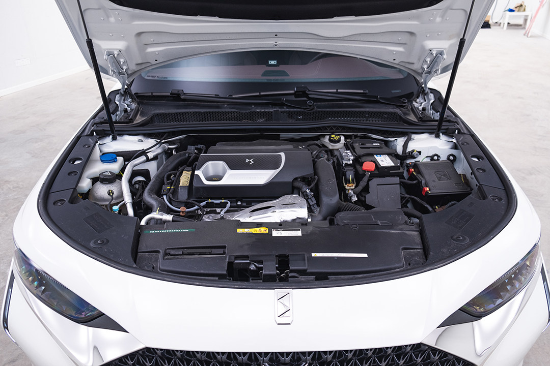 可输出215匹马力、300牛·米扭矩的1.6T涡轮增压发动机,搭配8AT手自一体变速箱,提速平顺从容;虽然没有欧系车型常见的硬朗,但在平稳地滤过路面上的大多坑洼裂隙之后,DS 9稳而轻快的身姿依然能使人愉悦。