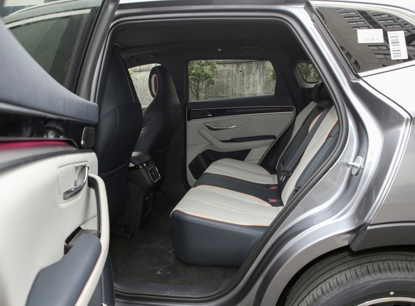 身高175cm的买买君坐进车内,将前排调整好为适合自己驾驶位置, 2765mm的轴距虽说不上后排乘坐空间多么宽敞,但腿部空间还剩余1拳4指。另外,后排座椅填充物较为柔软,整体乘坐感受足以媲美家族大哥比亚迪唐。
