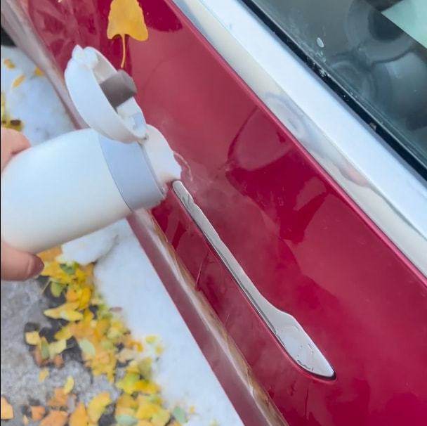 而特斯拉又再次成为主角,因为特斯拉的隐藏式门把手并不是弹出式的,而是需要按下打开,那么一旦被冻住,车主就只能用热水解冻。而有些车型的隐藏式门把手,带有破冰模式,实测可以在被胶带封住的情况下打开,不过在实际生活当中,也有被冻住无法破冰的情况。