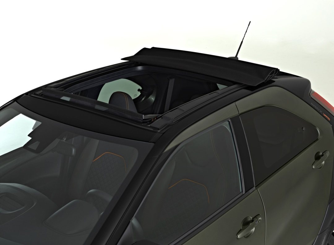 再值得一提的是,新车A柱、后翼子板、侧裙、轮毂都进行熏黑处理,以及在个别位置加入了橙色饰条,为新车带来不错的时尚气息。此外,新车还提供了可折叠开启的帆布顶棚,兼顾了实用性和经济性。