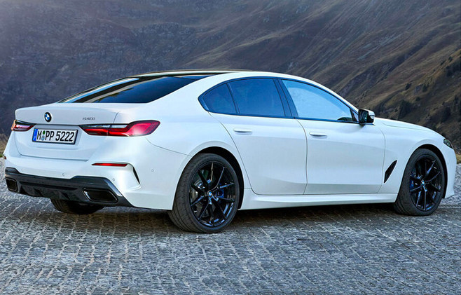 车身侧面来看,造型更加低矮流畅,车顶甚至带有溜背的趋势,熏黑轮毂内部采用了蓝色MP高性能刹车卡钳。车尾部分,灯组造型与4系、8系接近,更加细长,熏黑的下包围搭配为双边单出式排气布局,让整体的运动感更强。