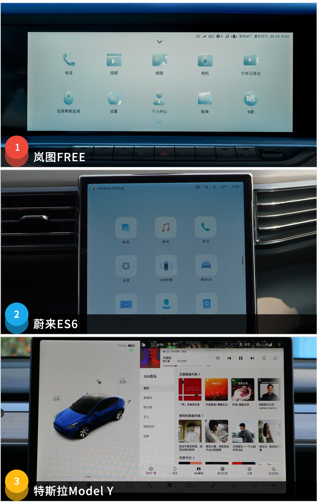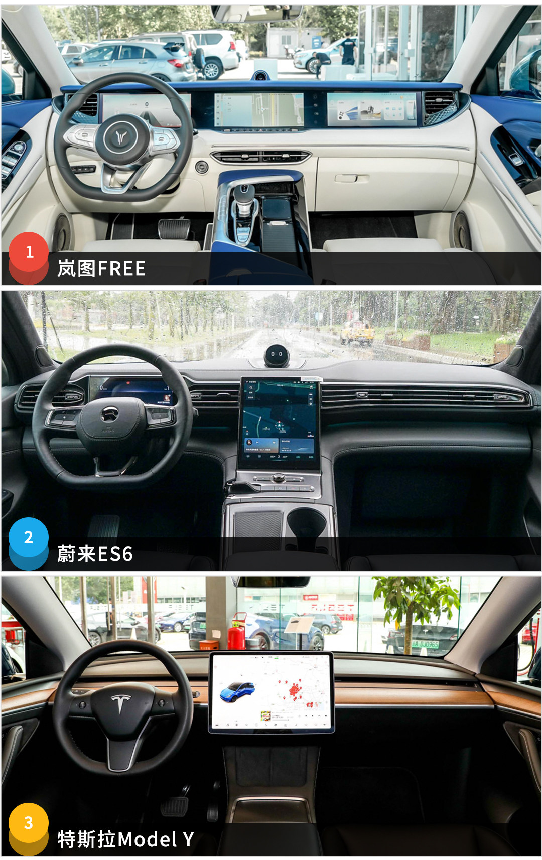毫无疑问,外观方面是众口难调的,而且三款车的设计语言也是完全不相同的,其中岚图FREE的风格类似于传统豪华品牌,看起来较为大气,蔚来ES6则是主打科幻路线,视觉效果很接近概念车,而Model Y则更像是风洞实验室所主导的作品,低风阻才是它的主要任务。
