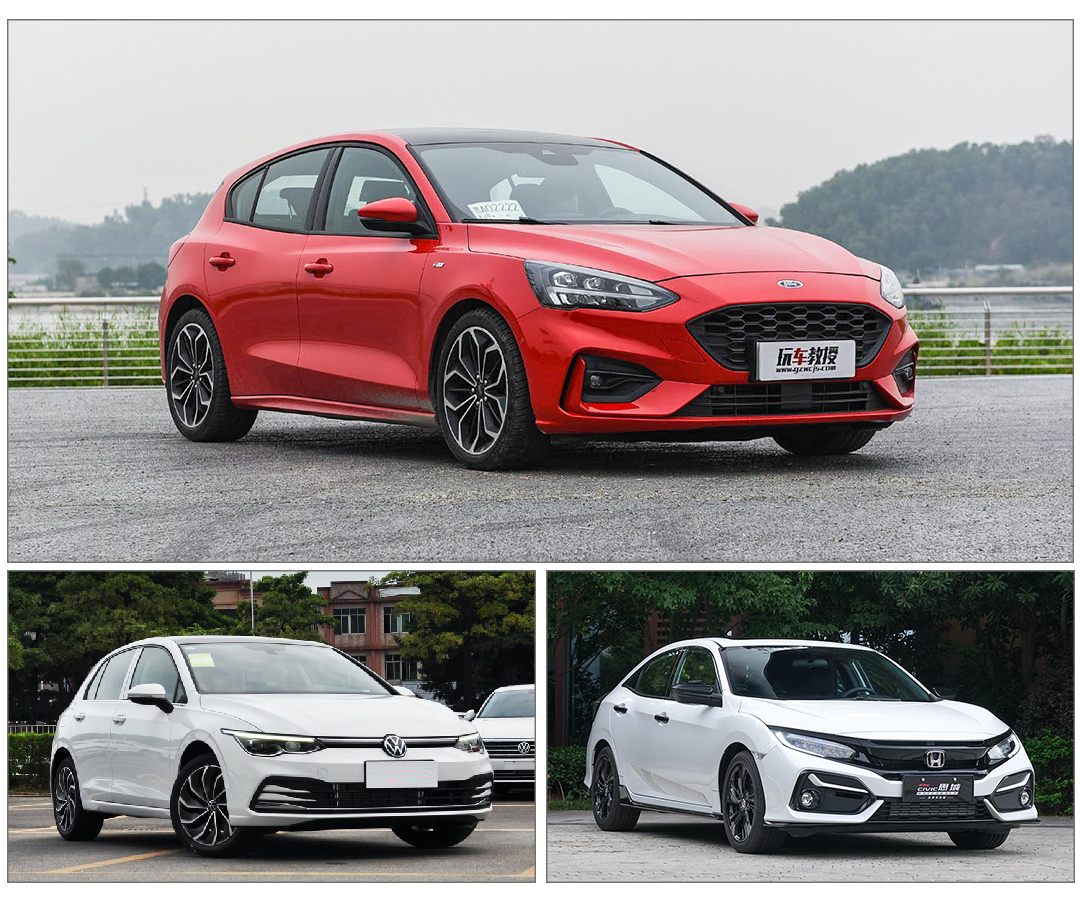 简单以三款车型来做个对比,分别是2021款福克斯两厢ST Line(15.08万)、2021款思域HATCHBACK潮酷控(15.29万)、2021款高尔夫 280TSI DSG Pro(14.98万)。