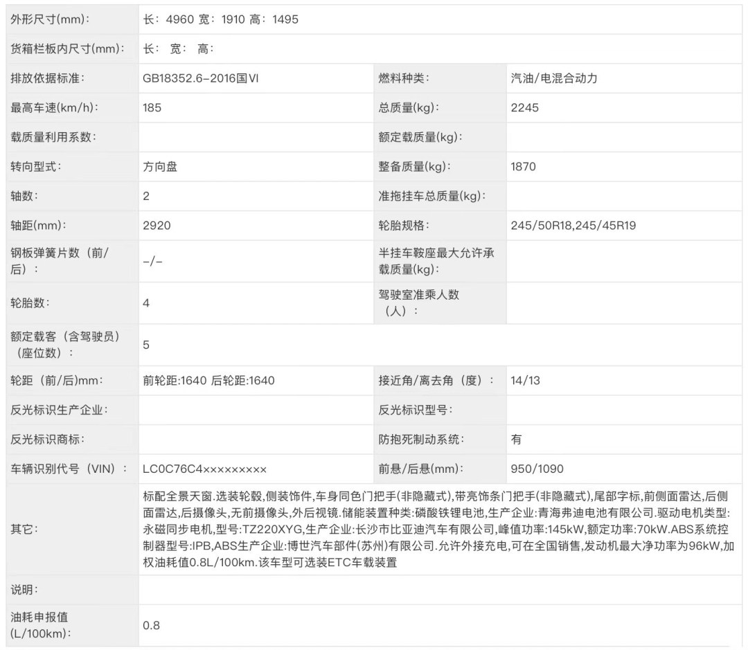 整体参数与低配版的唐DM-i保持一致,与之搭配的是磷酸铁锂刀片电池,纯电续航里程或为52km,同时可能还会存在纯电续航里程为112km的版本。而在油耗方面,根据申报信息显示,汉DM-i综合油耗为0.8L/100km,在满油满电的情况下,续航里程预计能达到1000km。