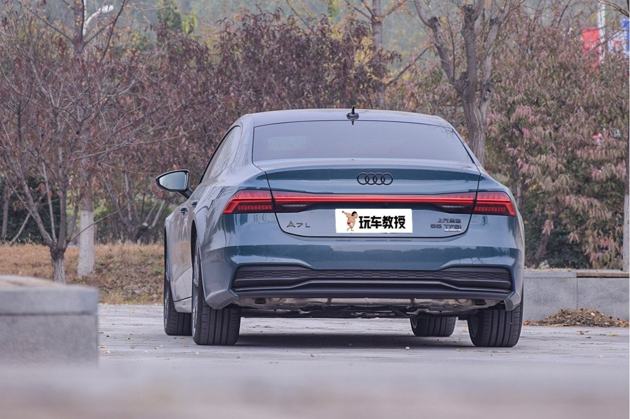 5076×1908×1429mm的长宽高在A7L身上演绎的十分协调,从侧面过渡至车尾的线条流畅自然,修长和谐的比例,让A7L比A7多了一份更正式的感觉。这其实也引申出一个问题,那就是为什么奥迪A7L要做三厢?在我看来,这是上汽奥迪对中国消费者期望、需求的一种尊重,三厢轿车本身在中国消费者心中就有着较高的权重,新贵消费者往往又有着多重身份,所以A7L在运动之余,也要满足行政场合的需要。