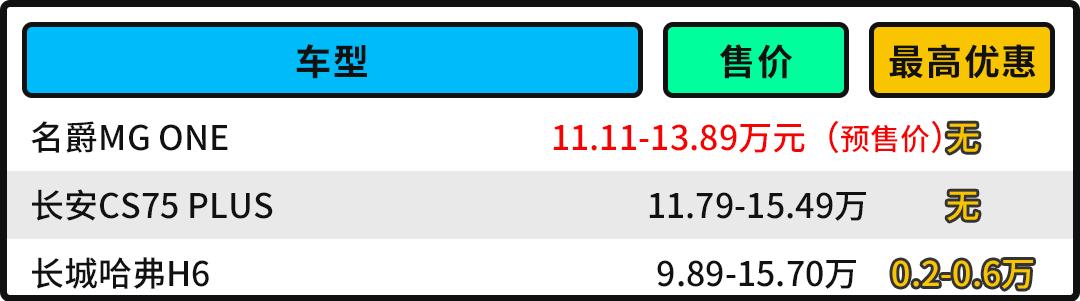在国内紧凑型轿车市场上,名爵MG ONE的竞争对手十分之多,例如同为自主品牌的长安CS75 PLUS以及长城哈弗H6。其中,长安CS75 PLUS的售价区间为11.79-15.49万元,由于新款车型上市不久,如今在市场上并没有任何现金优惠;而哈弗H6售价区间则9.98-15.70万元,现时拥有0.2-0.6万元优惠,若然MG ONE正式上市后在价格方面略微调整,相信销量持续攀升不成问题。