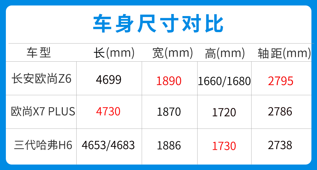 尺寸方面,新车的长宽高分别为4699/1890/1660(1680)mm,轴距为2795mm,与欧尚X7 PLUS相近的水平,这放在紧凑型SUV里妥妥的降维打击,这也是长安一贯的战略布局。