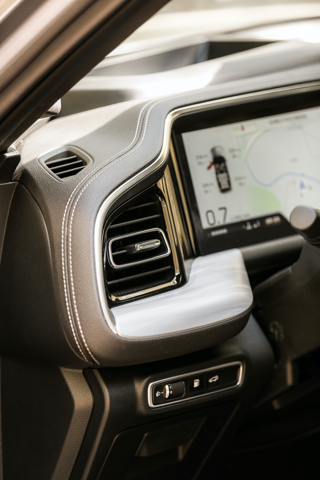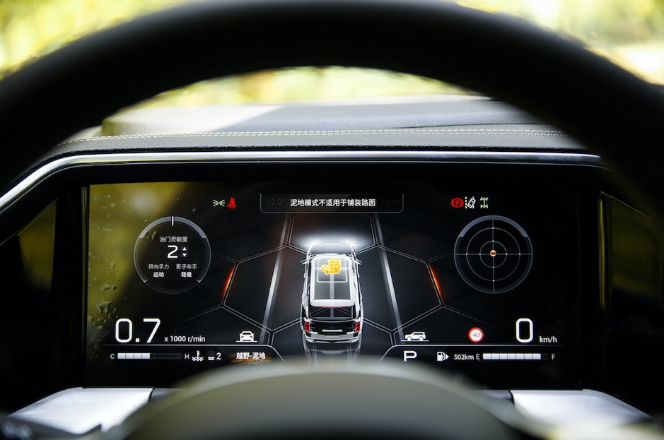 SUV带来不错的视野,所以较大的车身尺寸并没有为驾驭它增加太多负担,方向盘上手的反馈力度完全在合理范围内。科技带来的大尺寸屏幕,虽然视觉上并没有多喜,但是在用起来的时候总觉得个趋势,无限接近“不可抗力“。合理的屏幕尺寸搭配方向盘以及档把周围保留的按键,并不会让我这样的守旧派有什么口头上的可乘之机,不过多少要吐槽一下方向盘上的拨片,那是我把玩过最松散的拨片。