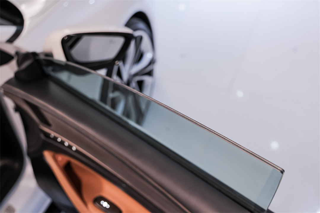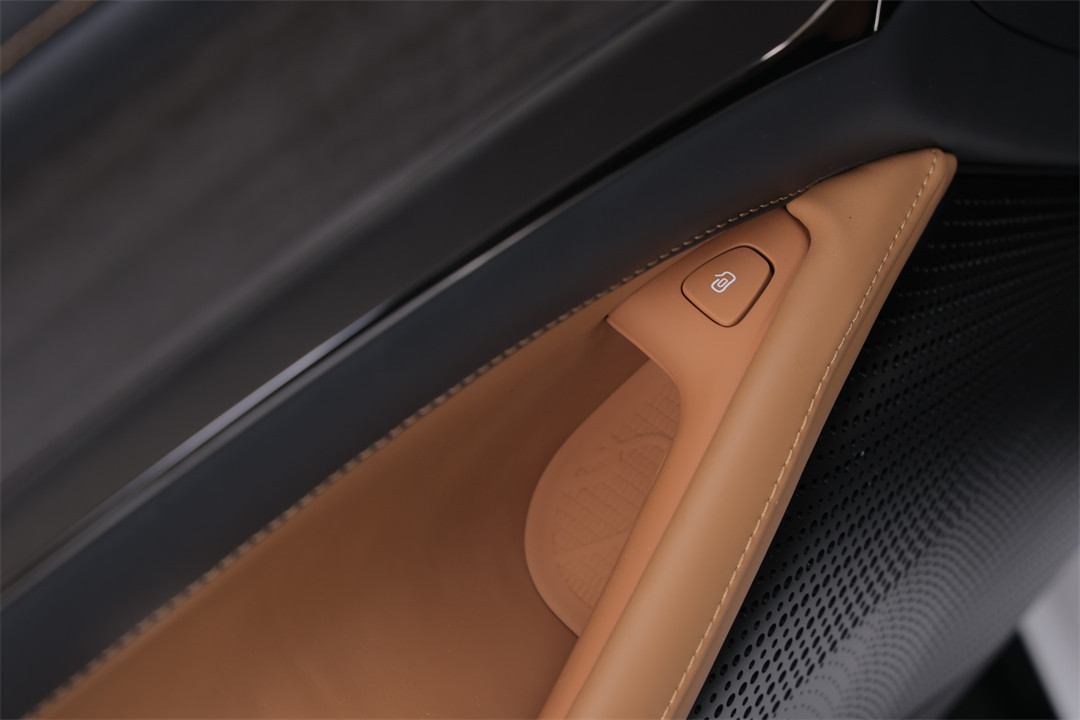为了带来更好的静谧性,前排还标配了双层夹胶玻璃,即便是无框车门也能够体验到安静的车内氛围。