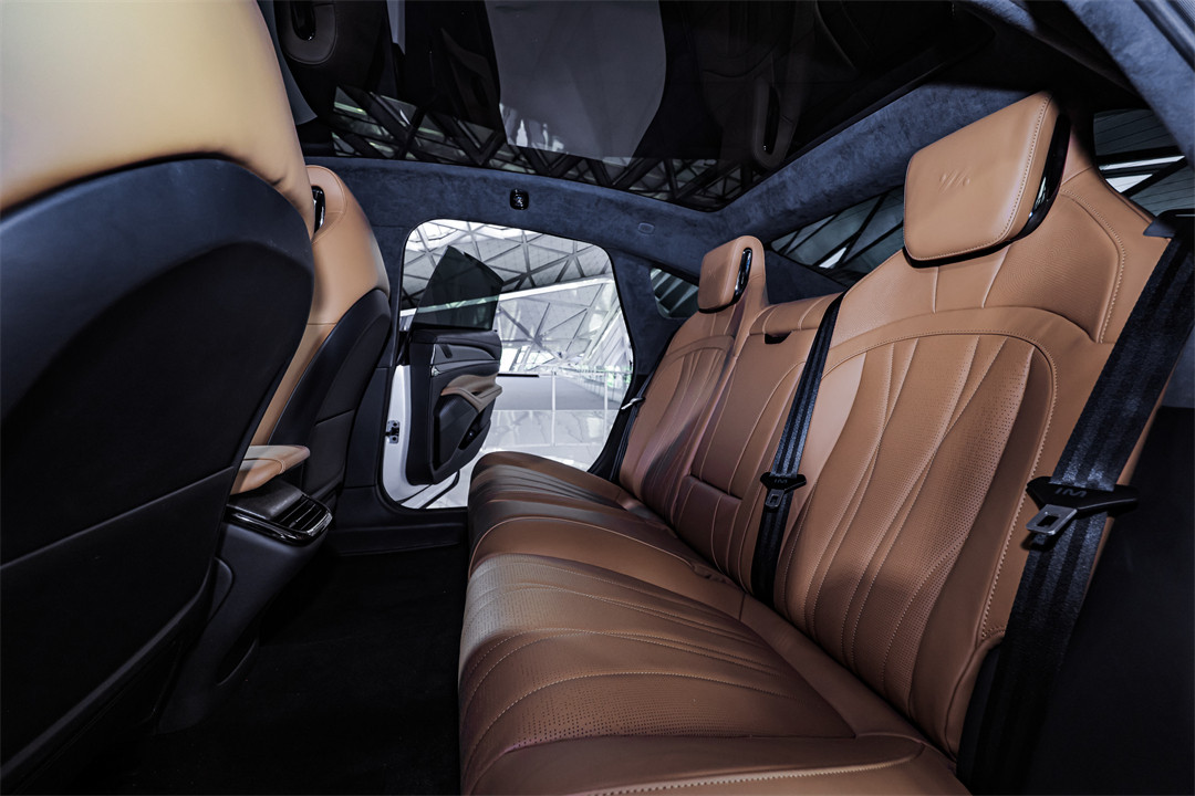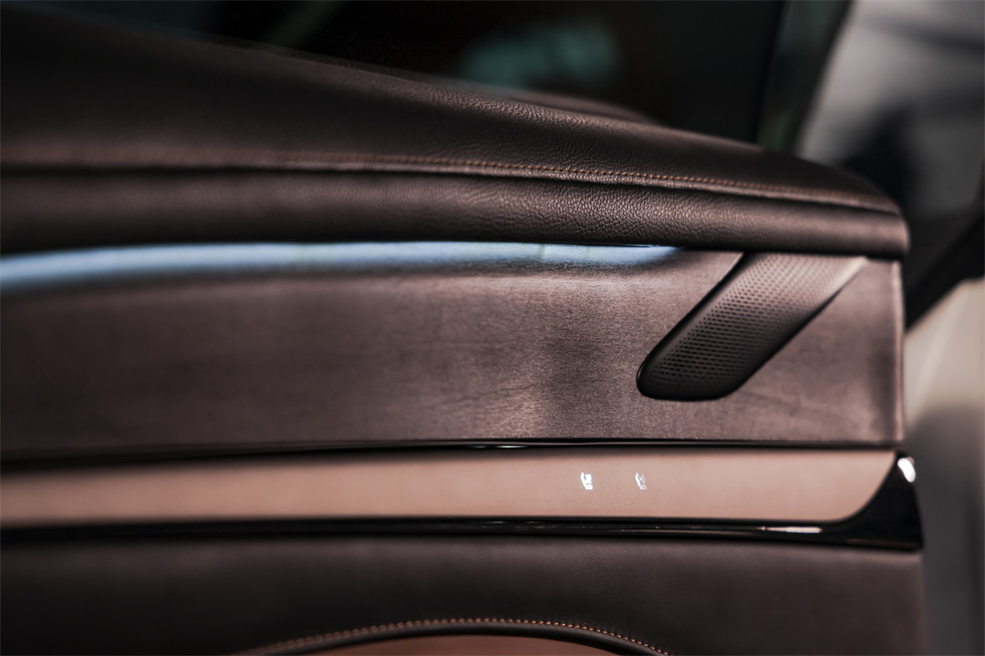 除此之外,智己L7内饰材质也是相当考究,整车大量使用半苯胺真皮与NAPPA真皮进行包覆,就连中控台上方也均加入了真皮覆盖,在触摸能够最大程度保留真皮的天然触感。同时,还提供了米色、棕色和黑色三种皮质颜色可选,实木饰板同样也提供两种颜色搭配,提升车内的高级感。