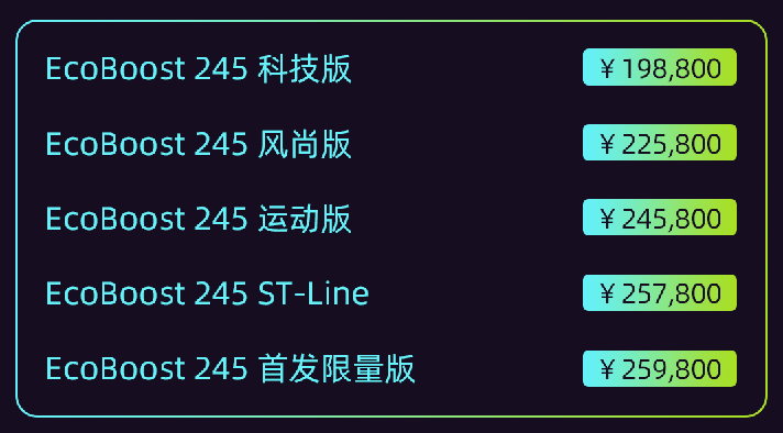 官方6.6s的百公里加速时间,也让我们对这套动力系统表现有不少期待,毕竟就当前福特在国内市场25万车型内所搭载动力系统就没出现这么“惊人”的零百加速成绩。