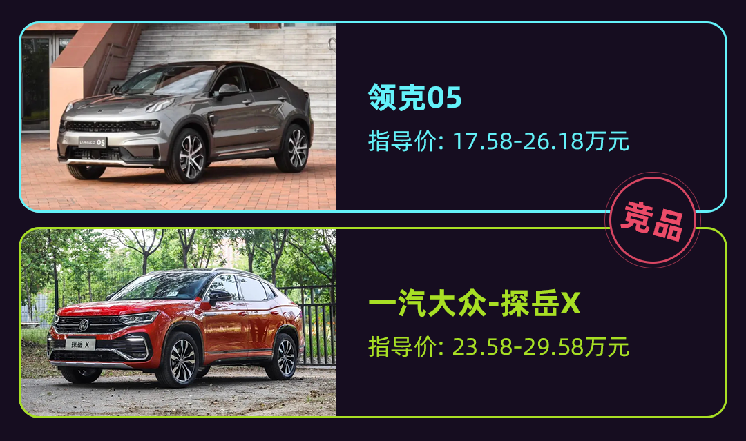 基于相同跨界SUV属性,售价又在20-25万区间,那么领克05和大众探岳X无疑会是其较大的竞争对手。与定位为紧凑级的领克05相比,长安福特EVOS在尺寸、空间等方面均有全面领先,不过同属2.0T发动机,领克05最大功率为254马力,数据更优。