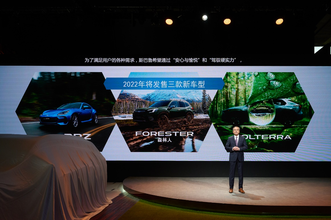 斯巴鲁汽车(中国)有限公司董事兼总经理高桥博昭在发布会上致辞,向大家介绍了斯巴鲁品牌、核心技术和独特性,并公布了2022年将在中国市场发售的三款重磅车型。