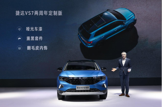 发布会的舞台C位,是一辆由黄渤与一汽-大众捷达品牌技术开发部部长Dr. Roland Huebler共同揭幕的捷达VS7两周年定制版,它对捷达品牌而言意义非凡,预示着捷达品牌正式开启定制化战略。