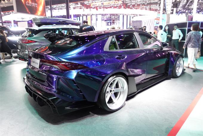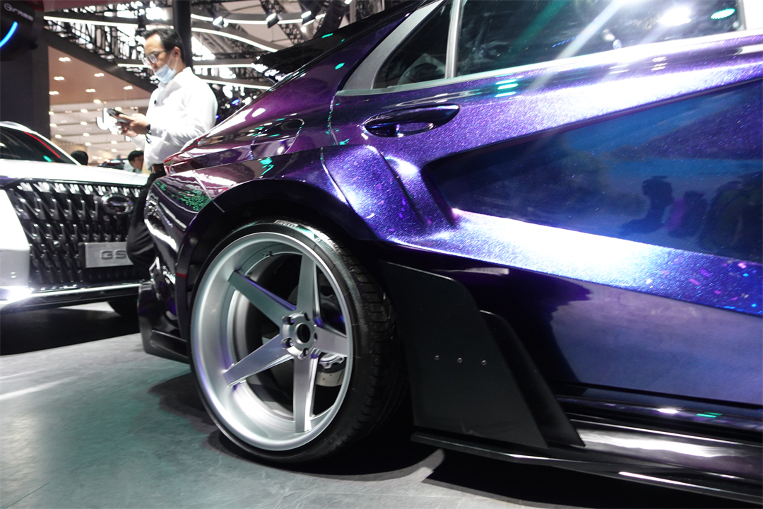 在外观方面,首先我们能看到它最大的变动莫过于它的车身配色了,它采用了带有渐变效果的紫色车漆,能够在不同的光线照射下,车身的颜色会带有一定的变化,层次感十分的丰富。