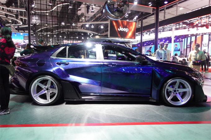 来到车侧,官方并未对其做出太大的变动,主要是原厂的车身线条就已经足够的锐利,仅仅只是换上了新的侧裙就已经非常有感觉了。