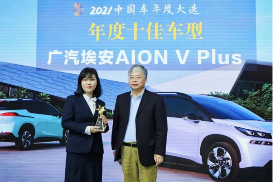 同济大学教授朱西产为广汽埃安AION V Plus车型传播总监叶蓓颁奖