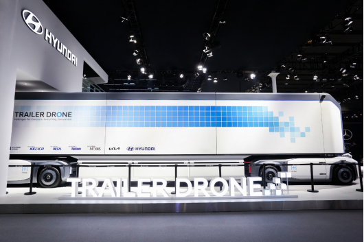 纵观整个碳中和展区,最引人注目的当属体积最庞大的氢动智能无人运输车(TRAILER DRONE)。作为一种“零碳排放”可实现完全自动驾驶的集装箱运输系统,氢动智能无人运输车(TRAILER DRONE)以氢燃料电池系统作为动力源,同时搭载两台智能无人运输平台e-Bogie,充满一次氢气即可拥有超过1,000km的续航里程,可完全媲美现有集装箱运输系统。根据计划,现代汽车集团在2028年将率先成为全球首个旗下所有商用车型均搭载氢燃料电池系统的汽车制造厂商。