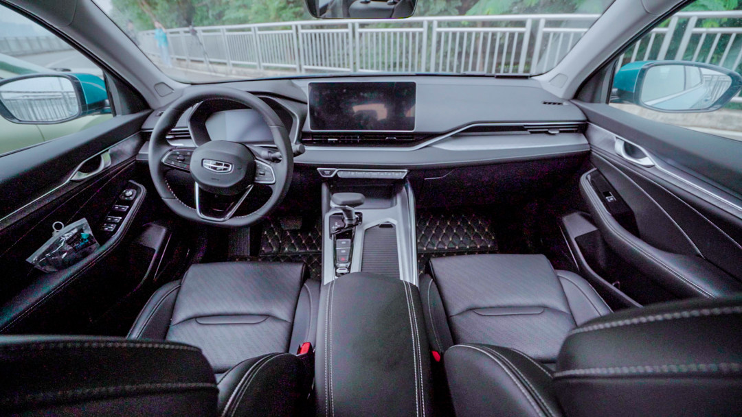 影豹的内饰相比星瑞会更加战斗一些,各种皮革、碳纤维饰板一应俱全,确实能俘获不少年轻人的喜爱。另外还有一点要表扬的是,双联屏的科技感以及里面的UI设计都要比星瑞更加酷炫。