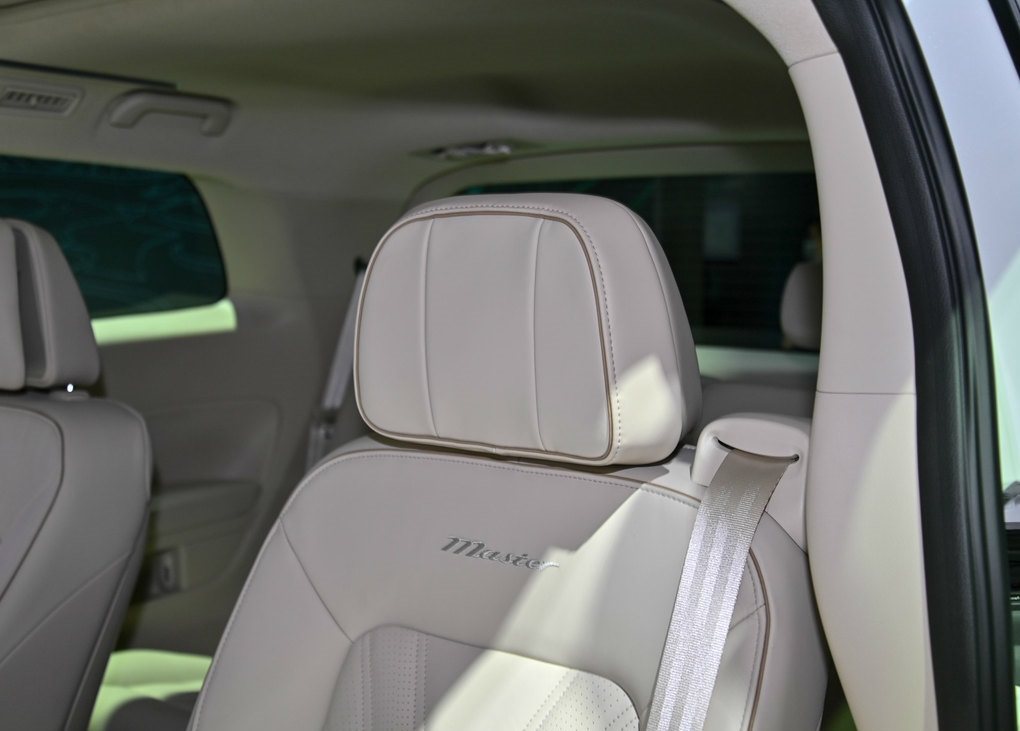 同时作为专属细节,该车在副驾驶中控台、座椅靠背以及第二排地台上均出现了代表大师系列的“master”英文标识,满满的高级感。