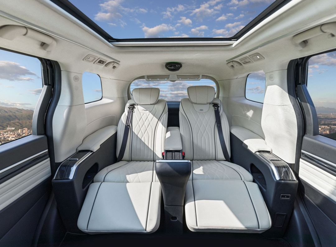 空间方面,大师系列旗舰版采用2+2+3式7座布局,后排配备两个独立式航空座椅,该座椅带有双侧扶手和腿托功能,并且支持前后调节、靠背调节以及腰部调节。同时,该座椅还有加热、通风和按摩功能,给到乘客极致的舒适体验。