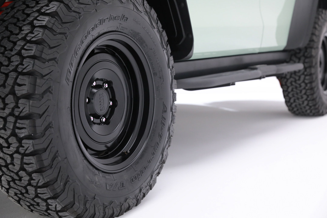 当然了,售价比普通版贵了好几万元的它自然不会是样子货,除了我们看到的这些来自TOPFIRE越野外观套件之外,风林铁骑还配备了硬度更高的顶胎器套装、更轻的备胎架等实用装备。除此之外,它还装备了百路驰的285/70R17 KO2轮胎,同时将悬架高度提升了2英寸,最小离地间距达到了238mm,同时接近角和离去角分别为34度/35度,大大提高了车辆的通过性。